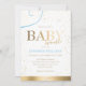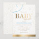 Belo convite para ouro e chá de fraldas azul.