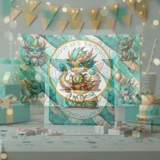Um lindo dragão de chibi branco, de ouro e turquesa teal chibi, convites de festas de aniversários do menino. Deixe a imaginação do seu filho brilhar com estes convites de aniversário de ficção científica super legal!