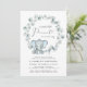 Um convite para o chá de um bebê bonito, com "A Sweet Little Peanut Is On Your Way" na tipografia moderna e um roteiro de na moda com um inchaço cardíaco, e uma ilustração com aquarela de um elefante bebê azul pastel em uma coroa de verde-sábio eucalipto verde-verde-verde.