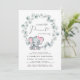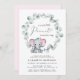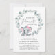 Chá de uma menina bonita apresentando "A Sweet Little Peanut Is On Her Way" em tipografia moderna e um roteiro de na moda com um inchaço cardíaco, e uma ilustração aquarela de um elefante bebê rosa pastel em uma coroa de verde-sábio eucalipto verde-sensual.