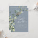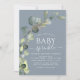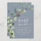 Eucalipto Verde Suculente Primavera de Cor de Água Botânica Gênero Menino Neutro de Bebê ou Bebê Rapariga Convite para Chá em fundo branco - inclui uma bela e elegante tipografia da escrita com folhas botânicas modernas e verde para a celebração especial da Mãe Ser.