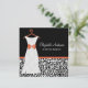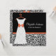 Faça uma declaração de moda com esses convites de chá de panela de impressão preto e branco-leopardo com um vestido de noiva moderno em um cabide decorado com uma fita Koi Orange feminina presa em um arco bonito. Este convite para impressão de animais quentes pode ser personalizado adicionando o nome da noiva a ser, as cores do casamento e as informações da festa às áreas de texto de modelo personalizáveis. Este convite para na moda faz parte da Coleção de Cores da Moda de Queda de 2013. Imagem impressa em formato plano, não faixa real.