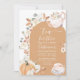 Chá EDITÁVEL para Três aniversário de 3 anos Floral de Pumpkin Boho Convite para Flores Brancas Russas Elegantes Aniversário Par Fall Pumpkin Folha Tema Convite