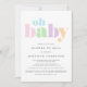 Quando amigos e familiares estão longe, celebre a futura mãe com um chá de fraldas pelo correio. Este convite para chás de fraldas minimamente neutro do gênero apresenta "oh baby" num arco-íris de uma tipografia audaciosa, azul, verde, rosa, roxo e laranja. Você pode personalizar facilmente com os detalhes do chá por e-mail, incluindo informações de registro, onde enviar cartões e presentes, se a mamãe a ser hospeda um evento de transmissão ao vivo ou posta fotos de sua abertura dos presentes, e onde obter mais informações.