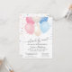 Celebre de um lado a outro com um chá virtual com balões simples, bonitos, rosa e azuis e confetti. Fácil de adicionar chá virtual | chá de fraldas por correio e informações sobre onde enviar presentes para a mãe. Todo o texto pode ser facilmente alterado para ajustado dos detalhes da sua parte. Voltar tem um padrão de confete rosa e azul