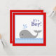 O chá de fraldas vermelho, branco e azul de veleiro tem um veleiro e uma baleia giratória. Este convite para chá de fraldas de veleiro vermelho e azul é facilmente personalizado para o seu evento, adicionando detalhes do seu evento, estilo de fonte, tamanho de fonte e cor e texto.