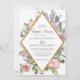 As flores inglesas românticas pintados mão bonitas do jardim da casa de campo e a flor selvagem com um ouro cor-de-rosa dado forma geométrico moderno, quadro do brilho do falso fazem uma coleção elegante simples do convite do casamento. Eterno, elegante e clássico contudo com um tema na moda, chique contemporâneo. Aperfeiçoe para um jardim exterior, um vintage botânico, um ajuste da fazenda ou do celeiro ou um boho, celebração boémia do estilo. Elegância perfeitamente refinada e tema romântico do casamento. O fundo é mostrado no branco mas você pode mudá-lo a toda a cor que você desejar. Um grupo completo de produtos está disponível para combinar para casamentos, chás de panela ou festas de aniversário. Arte pintada e direitos reservados por Audrey Jeanne Roberts todos os direitos reservados.