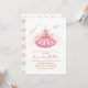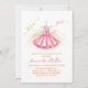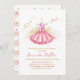 Ilustração de bailarina adorável. As costas têm uma bela bailarina voando enquanto ela segura alguns balões sobre um fundo com listras cor-de-rosa e branca e pontos brilhantes do ouro