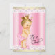 Adorável convite de chá de cabelos loiros cor-de-rosa e dourada, de menina, com rendas bonito rosa e fundo dourado. Este convite para chás de fraldas cor-de-rosa e dourado é facilmente personalizado para o seu evento, adicionando detalhes do seu evento, estilo da fonte, tamanho e cor da fonte e texto.