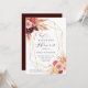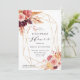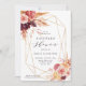 Este convite ao chá apresenta flores rústicas a cores aquáticas em terracotta, burgundy, laranja queimada, amarela, esbranquiçada com grama bege e pampas marrom, e um quadro geométrico dourado. Para personalização mais avançada deste design, clique no link "personalizar mais". Itens correspondentes também estão disponíveis.