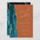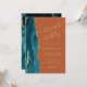 A borda esquerda deste elegante e moderno brunch e chá de panela borbulhante apresenta uma borda azul-lacrimejante agatada com falso brilho dourado. O texto personalizável combina manuscrito dourado, fontes em copperplate e itálico em um fundo laranja queimado ou robusto. O verso apresenta um design de chaleira e de agata dourada.