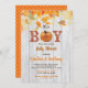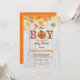Perfeito para o outono, época de Ação de Graças.Receba este convite bonito agora! Tema: Estação de Ação de Graças: outono, Estilo de outono: Cores Elegantes: Tonalidades brancas, laranja, marrom e amarelo de outono.Gráficos: Fundo de madeira branca, gráfico de abóbora vintage, Watercolor (aquarela) Folhas de outono, fundo de bolinhas Para:Chá de Bebê para Meninos