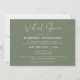 Se você não pode se reunir com seus amigos e família para celebrar seu chá de panela, sem preocupações, faça dele uma festa virtual. Compartilhe as notícias com este simples e elegante cartão. Uma tipografia moderna e uma paleta verde de senso de tendências para sua papelaria de Chá: escolha esta suíte de casamento simples e elegante. Totalmente personalizável: você pode alterar o plano de fundo e a cor do texto conforme desejar.