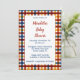 Comemore as mães a serem acompanhadas desses convites de chá de xadrez. Eles coordenam-se com outros produtos da minha coleção aqui vem o Son chá de fraldas e apresentam um padrão xadrez em vermelho, laranja, amarelo e azul. Esses convites estão prontos para serem personalizados com todos os detalhes do seu partido.