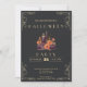 Este convite do Halloween exumenta um sentido de elegância escura com seu fundo negro, complementado por sofisticadas bordas e escrevendo de canto de ouro. O contraste entre o preto profundo e os sopros dourados cria um apelo visual impressionante que dá o tom para um evento na moda e assustador. A frente do convite é enfeitada com velas pretas, flores laranja e abóboras pretas, acrescentando um toque festivo, mas sofisticado, ao design. Estes elementos do tema do Dia das Bruxas são intricadamente detalhados, acrescentando profundidade e textura à aparência geral. O esquema de cores preto e dourado, juntamente com os motivos do Dia das Bruxas de velas, flores e abóboras, cria uma atmosfera cativa e misteriosa que certamente impressiona seus convidados. O verso do convite também é negro, mantendo o tema elegante e coeso. Quer você esteja planejando uma festa de fantasia glamourosa ou uma sofisticada bola de mascarada, este convite certamente fará uma declaração. Envie estes convites aos seus convidados e os convide para se juntarem a vocês por uma noite de encanto e entusiasmo enquanto celebram o Dia das Bruxas no estilo.