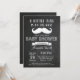 Convite para Chá de fraldas de bigode. Homem Pequeno. Fundo do quadro negro e branco. Arco gravata. Cavalheiro.