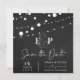 Chalkboard e String Lights Monograma Casamento Salvar a Data Convite. Mande essas elegantes Luzes de Corda de Chalkboard Casando Salve o Convite de Data para a família e amigos. Uma maneira perfeita de anunciar o casamento. Pode ser totalmente personalizado mudando os nomes da Noiva e do Quarto, Data do casamento. O design tem um fundo de quadro de controle falso com luzes de cordas. Para mais personalização, entre em contato comigo em mypaperlove2021@gmail.com
