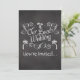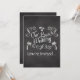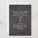 Use este cartão para o casamento, o janto de ensaio, a festa pós-festa ou qualquer evento relacionado ao casamento na praia. Trendy e o popular quadro negro em cinzas de carvão com texto de aparência manuscrito branco. Lembrança de um antigo comprador ou recurso de vintage. Traga de volta o estilo de vintage com um conselho de escrevendo empoeirado. A costa é um lugar perfeito para celebrar os grandes núpcias do dia do casamento com esse tema, usar esse sermão como um favor ou recordação querida para os tempos que se avizinham. Design Copyright © CustomInvitesOnline.com