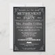 School's out for good! Celebrate a wonderful educator's next chapter with this charming chalkboard-style retirement party invitation. The design features playful white lettering against a classic black chalkboard background, reminiscent of a classroom. It highlights 'Retirement Party' prominently, followed by space to add the retiree's name and details about their incredible years of teaching. The invitation clearly lists the date, time, and venue for the celebration, making it easy for guests to plan their attendance. With a fun 'It's a Surprise!' message and RSVP details, this invitation is perfect for honoring a beloved teacher's well-deserved retirement.