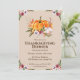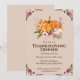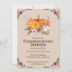 Este é um belo cartão de convite de Ação de Graças para convidar sua família e amigos para o janto de Ação de Graças. A imagem apresenta uma combinação de abóboras e folhagem de aquarelas como uma peça central no topo da placa, com borda de canto floral. Todo o texto do cartão pode ser personalizado com seus próprios detalhes.