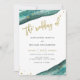Estes elegantes e modernos convites para o casamento apresentam pedras geodais de cor d'água, com falsa tipografia de ouro e salpicos.
