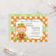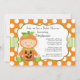Adorável convite para o Chá de fraldas de outono moderno, com um bebê fofo vestindo uma fantasia de abóbora-doce colocada sobre um fundo polca-laranja pontilhado com uma banda verde-listrada branca. Itens correspondentes disponíveis em nosso compro. Perfeito para chá de fraldas de menino, chá de fraldas de menina ou chá de fraldas neutro em sexo. ©JD Digi Designs