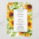 Um convite clássico de janto de ensaio floral com flores girassóis de cor amarela.
