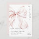 Convite de chamada de nome de bebê com tema de laço com um design de laço rosa elegante e um design minimalista moderno