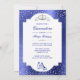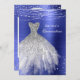 Este elegante vestido prateado em um fundo azul real é perfeito para seus convidados de festa. Diamantes espumantes e luzes de cordas destacam as bordas. A parte traseira apresenta dentro de texto azul elegante, um quadro branco e prateado com tiara diamante e saltos azuis e brancos. Por favor, note: Estas são todas imagens, e não joias reais. Personalize facilmente este convite com a sua própria redação clicando no botão "personalizar". Também faz um excelente de convite para um aniversário!
