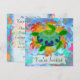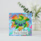 Cartões de convite de dois lados. O Front tem o personalizável "Você é Convidado". Voltar tem tem informações de convite — introduza o título do evento, a data, a hora, a localização e uma mensagem pessoal. Uma tartaruga verde pintada digitalmente com uma casca com padrões contra um fundo de algas laranja como as chamas.