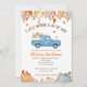 Faça convites para um bebê doce. "Uma abóbora está a caminho!" Estes convites apresentam uma cor d'água pintada de caminhão azul e folhas de queda e abóboras. O belo trabalho de ilustração foi feito pelo RedDogStudioShop