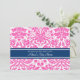 Convites personalizados para bebês em cores damasco florais elegantes e modernas, cor-de-rosa-quente, azul-marinho escuro e branco clássico e vintage. Personalizável com seu texto, entre em contato conosco para solicitar uma alteração de cor.