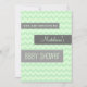 Convites personalizados para bebês em verde-menta pastel elegante e moderno, cinza de carvão escuro e padrão de listras retrô chevron zigzags branco. Personalizável com seu texto, entre em contato conosco para solicitar uma alteração de cor.