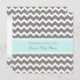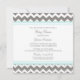 Convites personalizados para bebês em azul-turquesa elegante e moderno, cinza e padrão zigzags chevron branco. Personalizável com seu texto, entre em contato conosco para solicitar uma alteração de cor.