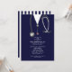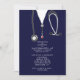 A festa de formatura de uma escola de medicina criativa convida a apresentar esfregões hospitalares e estetoscópio. Editar texto para criar convite de festas médico exclusivo.