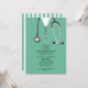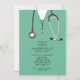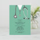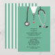 A festa de formatura de uma escola de medicina criativa convida a apresentar esfregões hospitalares e estetoscópio. Editar texto para criar convite de festas médico exclusivo.