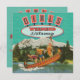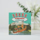 Fabulosa Festa de Getaway no Fim de Semana com um cartão-postal retrabalhado de duas meninas e um balanceamento de cara em uma canoa em maiôs com fundo de montanha. Foco suave com texturas leves de um cartão postal antigo. Ilustração desenhada à mão de uma placa retrô para dar boas-vindas às suas amigas ou caras a um fim de semana excelente.