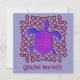 Cartões de convite de dois lados. O Front tem o personalizável "Você é Convidado". Back tem informações de convite — insira seu título de evento, data, hora, local e uma mensagem pessoal. Tartaruga marinha com uma shell de padrão de nó Celtic e um fundo de nó celta. Estilo em relevo.
