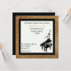 Convite para recital de piano elegante feito em formato quadrado, com uma ferramenta de tom dourado e um quadro preto ao redor das bordas. Gráficos de um piano de cauda preto, com notas musicais flutuando para cima, decoram o canto inferior direito do convite. Todo o texto está pronto para personalizar, para atender às suas necessidades de evento. É uma ótima maneira de mostrar o recital dos seus alunos.