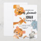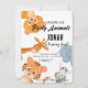 Convocando todos os animais de festa! Comece a celebração do aniversário do seu filho com este convite de aniversário divertido e adorável do Safari Zoo. Com ilustrações de uma girafa, leopardo-das-neves, rinoceronte, leão, elefante e zebra, este convite descolado certamente fará qualquer menino sorrir. Perfeito para qualquer festa de aniversário selvagem, este convite apresenta o texto "convocando todos os animais de festa". Comece a festa com este convite divertido e elegante!