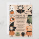 Prepare-se para uma comemoração monstruosa com o Convite de festas de Aniversário Bestial de Todos os Monstros! 👹 🎉 ♀️ Apresentando ilustrações lúdicas e brincalhonas de monstros amigáveis, abóboras e fantasmas, este convite estabelece um tom caprichoso e festivo para a festa de aniversário do Dia das Bruxas do seu filho. Perfeito para as crianças, é uma maneira encantadora de convidar convidados para um cheio de celebração assustador de guloseimas, jogos e diversão inesquecível!