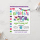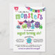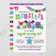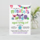 Convide todos os pequenos monstros para comemorar o aniversário do seu filho neste Halloween com este chamado de todos os monstros convites de aniversário com monstros legal, bonitos e coloridos com chifres e asas e presas e perseguições oculares. A parte de trás do convite é impressa com um legal padrão de listras em um estilo que corresponde aos monstros para uma aparência única!