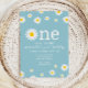 Convite Chamomile Flower Watercolor Teal Primeiro Aniversá