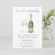Garrafa de champanhe elegante com dois taços de champanhe e texto "Pop do champanhe. Ela está mudando o nome."