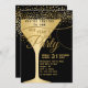 Convite Champagne Dourado Brilha Preto Festa de Ano Novo