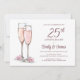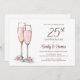 Levantem um copo conosco enquanto brindamos ao nosso aniversário de casamento de 25. Este convite elegante, com dois óculos de champanhe cor-de-rosa, é a forma perfeita de convidar seus amigos e família a se juntarem à alegria, riso e lembranças queridas. Você pode adicionar facilmente todos os detalhes necessários ao texto personalizável. Escolha entre vários tipos de papel e estilos de canto para tornar seus convites exclusivos. Além disso, você tem a opção de baixar o convite se preferir um formato digital.