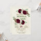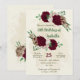 Belos convites de festas de aniversários românticos com flores de burgundy e champanhe e algumas folhas verdes. PARA MAIS PRODUTOS CORRESPONDENTES, clique na coleção acima ou entre em contato comigo