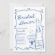 Pop a borbulhante... ela está recebendo um hubby! Este chá de panela azul é perfeito para um lanche de champanhe ou para uma celebração de tema azul. É uma maneira elegante de brindar a noiva ao estilo, com uma garrafa de champanhe desenhada à mão e modelo de vidro editável.
