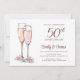 Levantem um copo conosco enquanto brindamos ao nosso 50º aniversário de casamento. Este convite elegante, com dois óculos de champanhe cor-de-rosa, é a forma perfeita de convidar seus amigos e família a se juntarem à alegria, riso e lembranças queridas. Você pode adicionar facilmente todos os detalhes necessários ao texto personalizável. Escolha entre vários tipos de papel e estilos de canto para tornar seus convites exclusivos. Além disso, você tem a opção de baixar o convite se preferir um formato digital.
