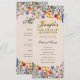 Design de "Programa de Festa de aniversário" elegante com flores silvestres de cor d'água e texto personalizado.